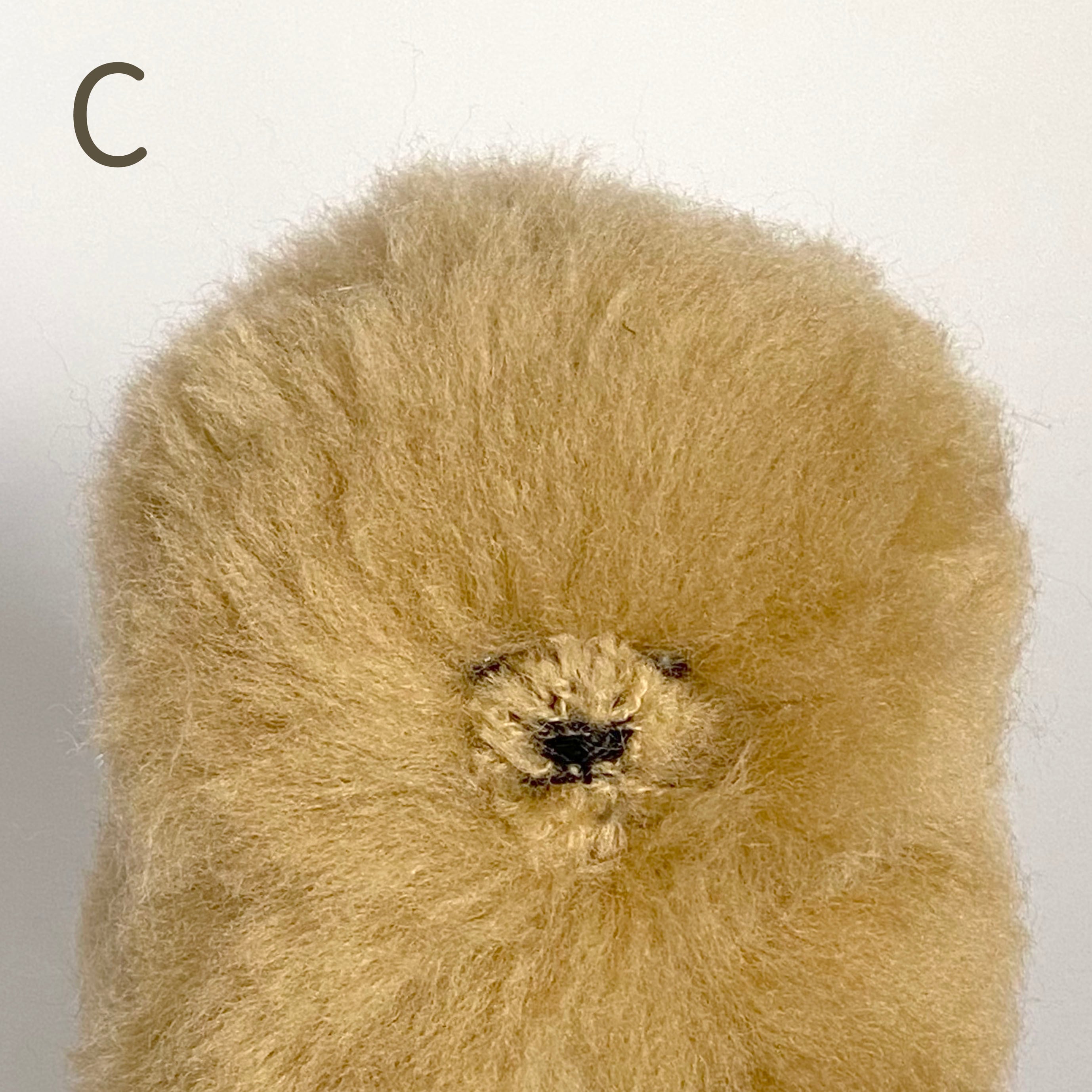 生地の特性上、鼻のまわりや手足の先に生地の土台が見える部分がございます。